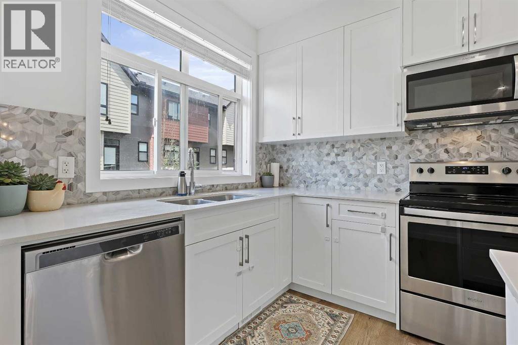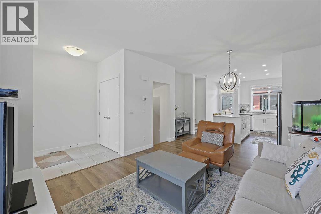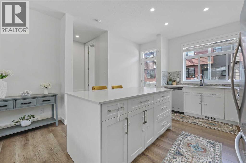 Welcome to this former showhome in the highly desirable community of Sage Hill, offering a perfect blend of modern design, energy efficiency, and functional living in the Arrive at Sage Hill development.With nearly 1,700 square feet of thoughtfully designed space, this 3-bedroom, 3.5-bathroom townhome features a bright, open-concept layout with contemporary finishes throughout. The main floor showcases wide-plank vinyl flooring, quartz countertops, full-height cabinetry, soft-close drawers, and a central kitchen island—perfect for everyday living and entertaining.Step directly from the kitchen into your fenced private yard, ideal for children, pets, or enjoying outdoor relaxation.Upstairs, you'll find a rare dual primary bedroom layout, each with its own walk-in closet and private ensuite. Vaulted ceilings and the convenience of upper-floor laundry complete this well-planned level.The fully developed basement adds versatility with a spacious third bedroom, a full 4-piece bathroom, and a cozy family or recreation room—ideal for guests, a home office, or additional living space.Built with sustainability in mind, this home is equipped with energy-efficient features, including a tankless water heater, high-efficiency furnace, and HRV system for year-round comfort and reduced utility costs.Additional highlights include assigned parking and a prime location close to future schools, shopping, medical services, and easy access to Stoney Trail. Outdoor enthusiasts will appreciate nearby walking paths, natural green spaces, and proximity to Nose Creek Park.This beautifully maintained home offers a turn-key opportunity for first-time buyers, downsizers, or investors. A must-see! (id:37074)